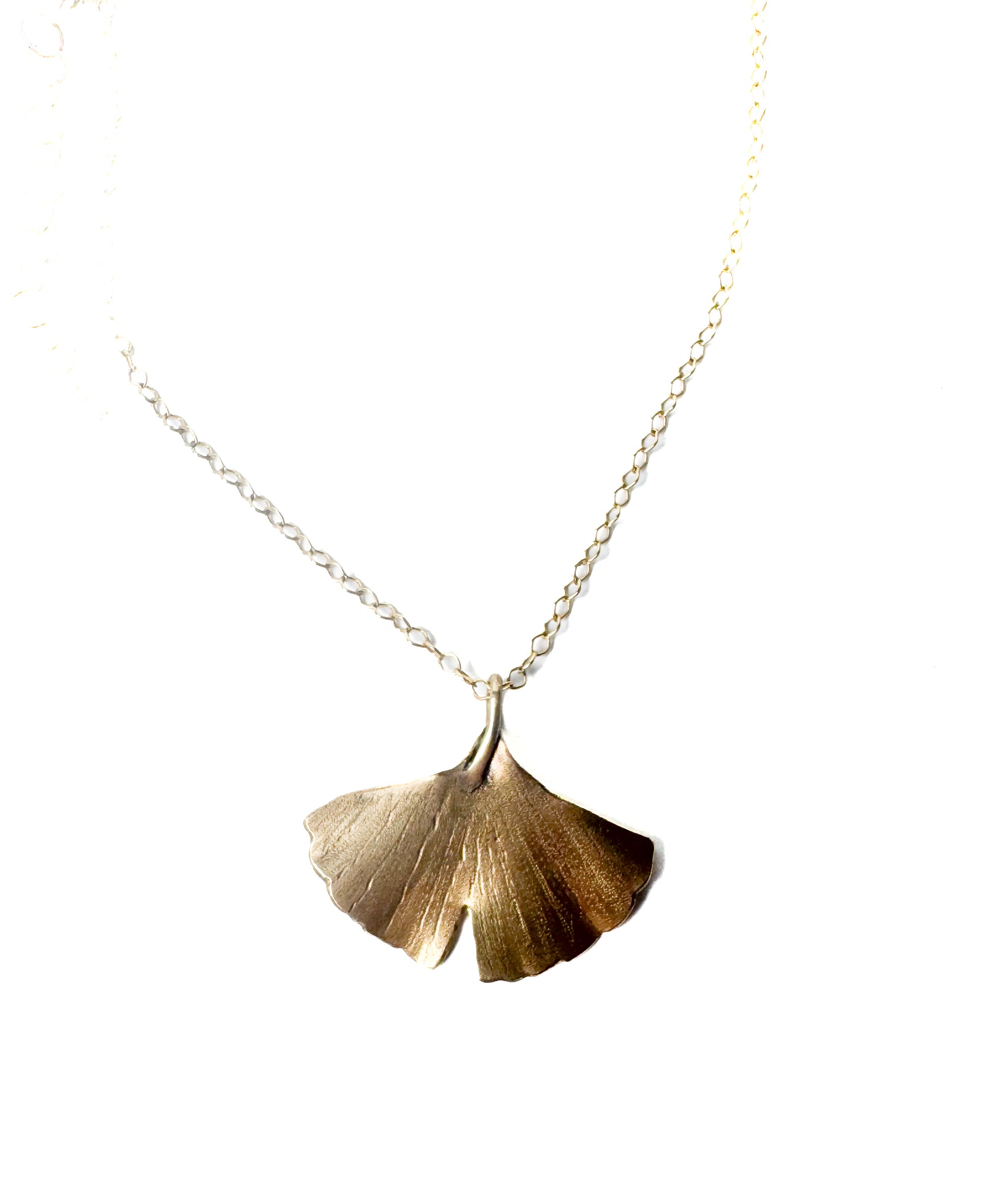 The Ginkgo Biloba tree is one of the world's most distinctive trees. It has been used by many cultures for medicinal purposes and is a symbol of resilience, longevity, and hope. Inspired by its beautiful fan shape, I've created this necklace in sterling silver and brass. The eye-catching shape makes a perfect necklace to wear alone or to add interest to a necklace stack. Available in Brass or .925 Sterling Silver.